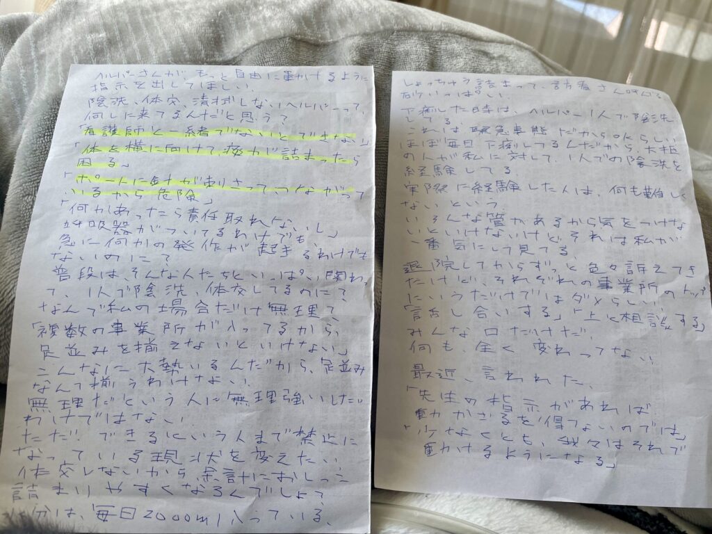 地域支援の看護師さんと先生に、訴えたいことを書いた紙を見せた。