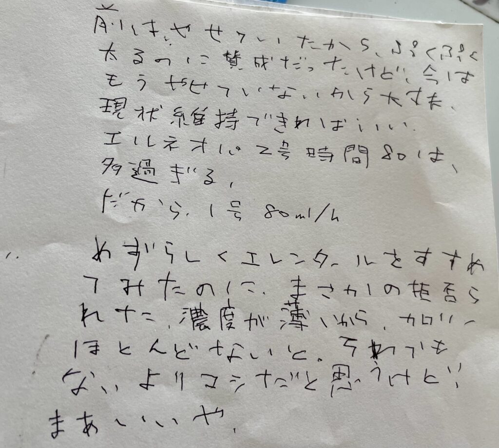 最近、先生は、ここに来るとまず私の書いた紙を見る。